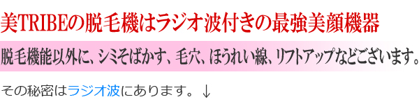 毛しながら美肌になれる。20代前半までは体内のコラーゲン生成が活発ですが、25歳を過ぎた頃から極端に低下。たるみやシワ、キメの乱れ等の悩みの原因に。ラジオ波をつけて、うぶ毛を抜くだけでなく、特殊な光の作用でコラーゲンを生成するため、脱毛と同時に美肌も手に入れることができる、脱毛と同時にコラーゲン繊維にも働きかけ、肌を活性化をしてくれます。お顔の、ハリやたるみ・シミを薄くし♪ケアしながら脱毛ができる美顔脱毛ヽ(^0^)ノ。リフトアップも実感頂けま~す♪ |